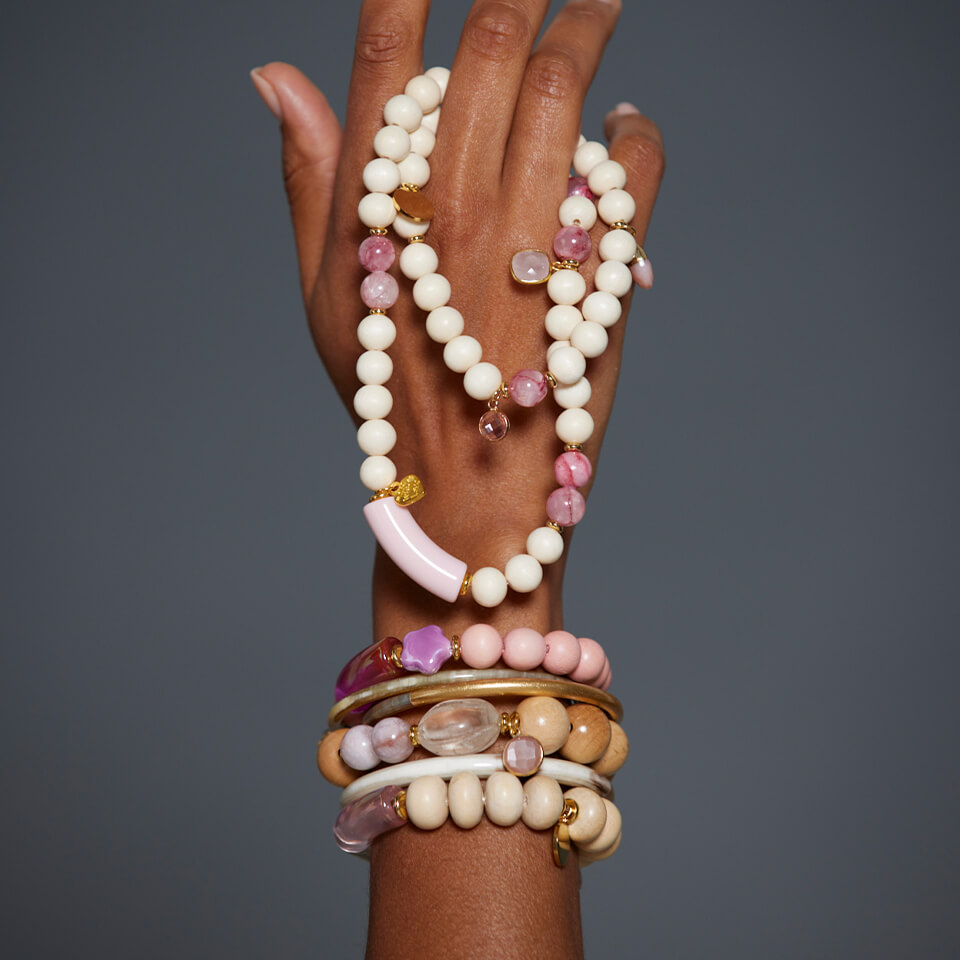 Hochwertige Armbänder aus verschiedenen Materialien und in verschiedenen Größen: Holzperlen, Edelsteine, französischem Acryl.