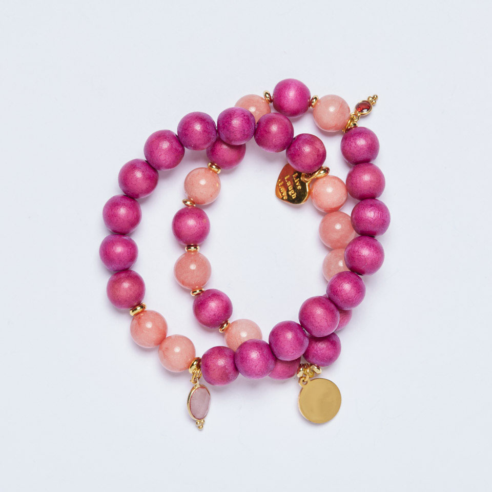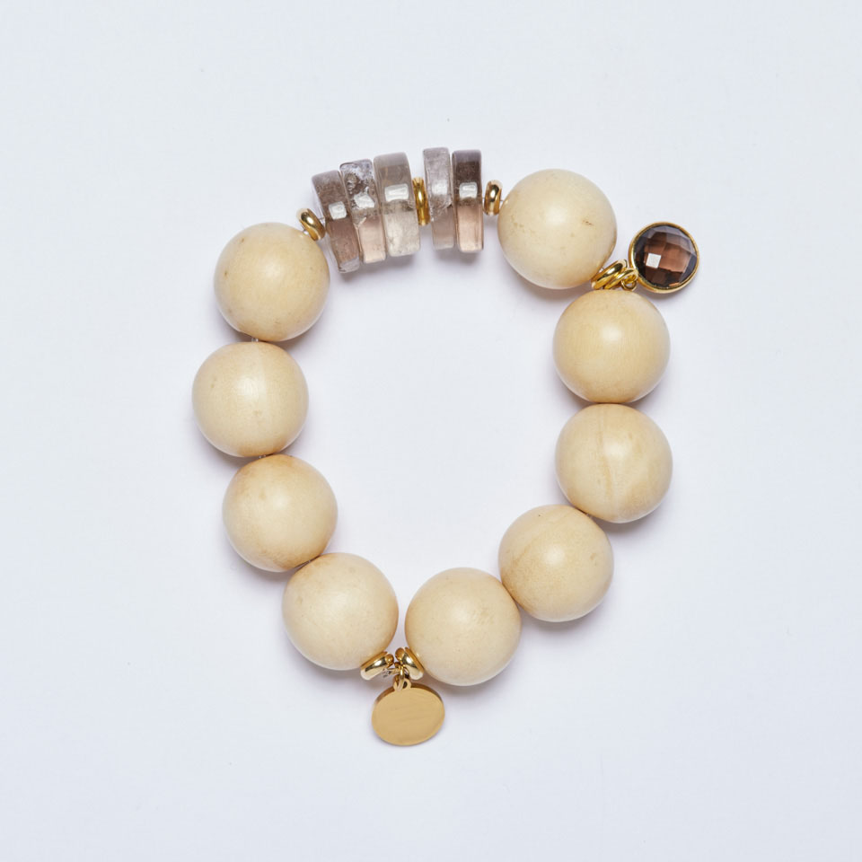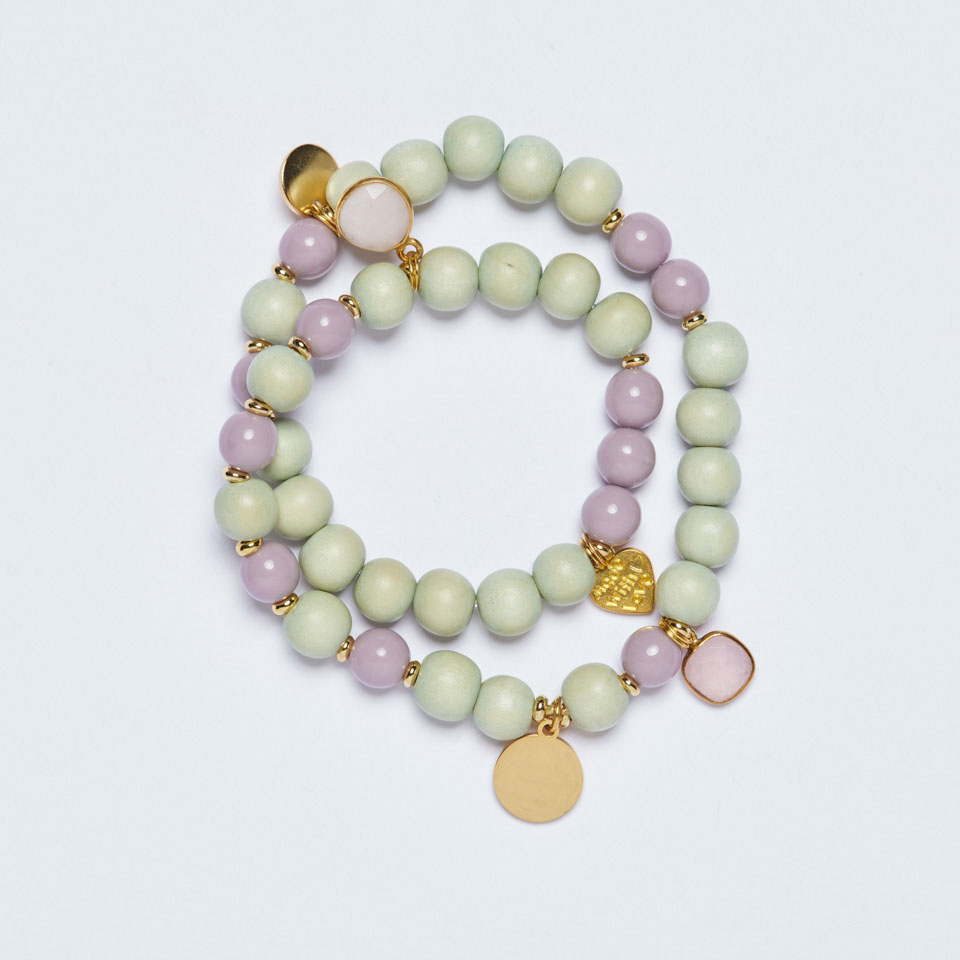 Die Holzperlen werden weltweit sorgsam ausgesucht. Sie werden teilweise naturbelassen, ansonsten lackiert oder gefärbt. Die Lackierung ist speichelecht, farbecht und schadstofffrei. Die eingefärbten Holzperlen sind sehr schwach und unregelmäßig gefärbt, was durchaus beabsichtigt ist, um einen Vintage-Look hervorzurufen.